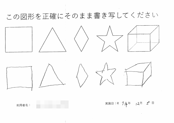 | 取り組み | (週2回利用) 【認知機能障害】水分摂取(利用中平均1500mlの摂取) 運動(屋外歩行を毎回2000m) 【 BPSD(周辺症状)】ショッピングケア(買い物)、役割り活動、おもいで会(回想法)、フレンドシップケア、屋外活動を実施。 |